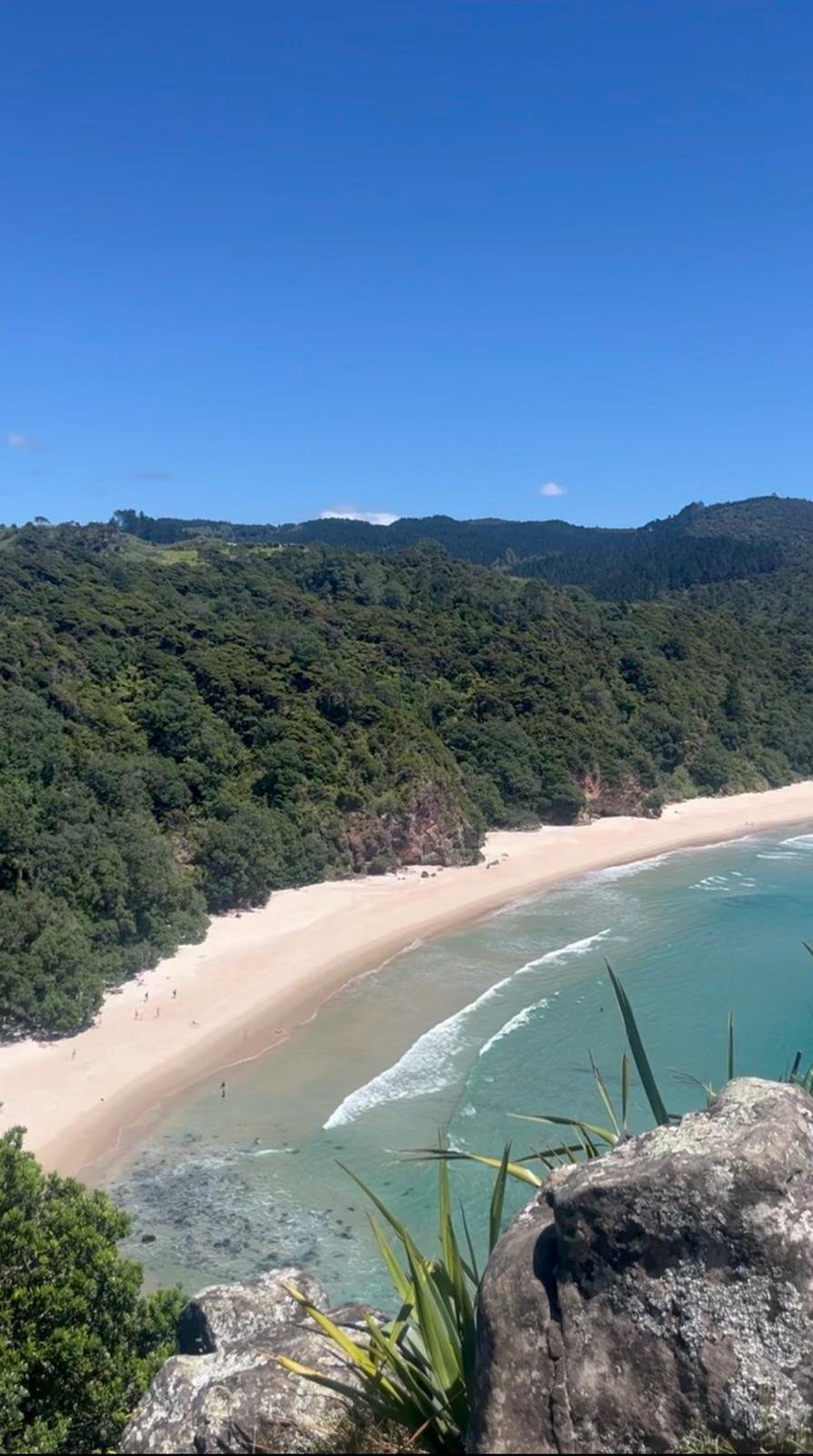 But yes, this beach came close. The sand was hot and white and slightly burned my toes and the blue-green sea was so clear I could see right to the bottom where my burnt toes were cooled off. I nestled myself under the shade of a Nikau palm tree for a couple of hours and soaked it all in. On my way back I climbed an 80m rocky lookout to take the snap in the 4th photo. When I returned to my van I hung my towel out, grabbed a camping chair and made some lunch.