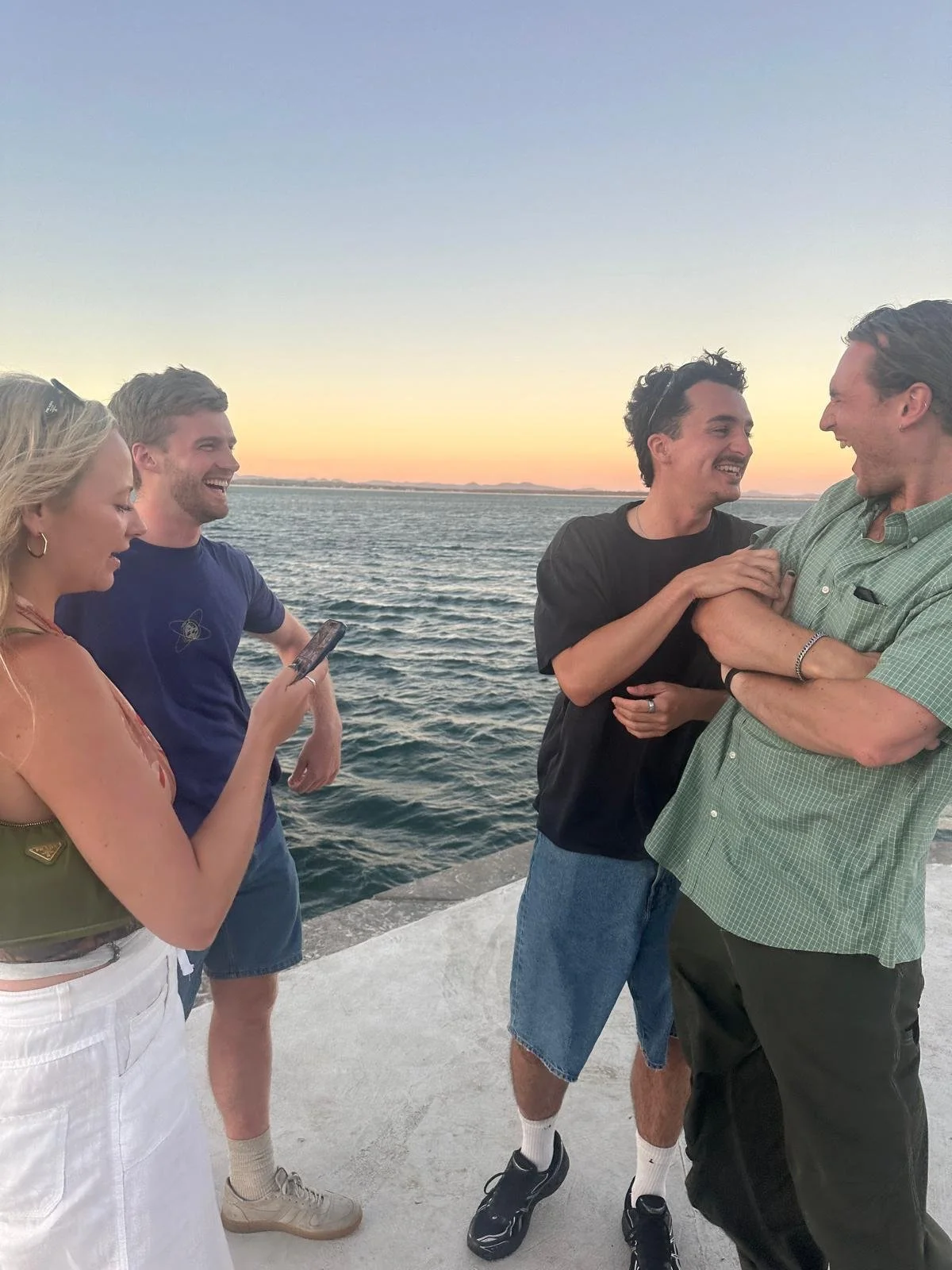 Later that evening we went for a meal at Atmos, a Greek restaurant that you’d expect to see in Mykonos, but also the only establishment that wasn’t a pizza or kebab shop in Shoal Bay. It did exceed expectations, however, and after a few drinks here, followed by a windy photo on the pier (see pic), we stumbled next door to Shoal Bay Country Club. Having visited this ‘club’ the previous night, the cheesy tunes and uncomfortable ‘locals-only’ vibe curtailed our evening fairly quickly. Before long, we were spending the last of our Aussie dollars ($20 to be exact) in the slot machines at the end of night, nothing spells the end of the night more than a brightly-lit casino. When we had lost all our money, we trudged back up the hill to our Airbnb, lamenting the fact we were all parting ways the next day.