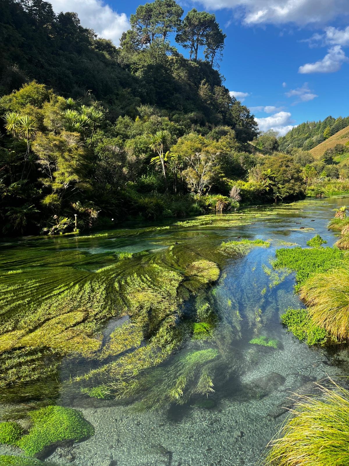 When it comes to campsites in NZ, you can book them on the day and they will only set you back 30–40 NZ bucks per night. For this you’d get access to a power cable, water hose, kitchen and showers (with good showers often making the difference). My first campsite was Tasman Holiday Park which was incredibly green and idyllic; I mean my camping spot backed onto a stream which was genuinely a home to a family of ducks.